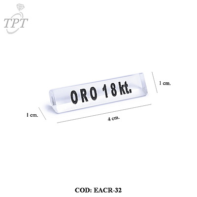 EXHIBIDORES DE ACRILICO LINGOTE 4CM - LEYENDA ORO 18KTS