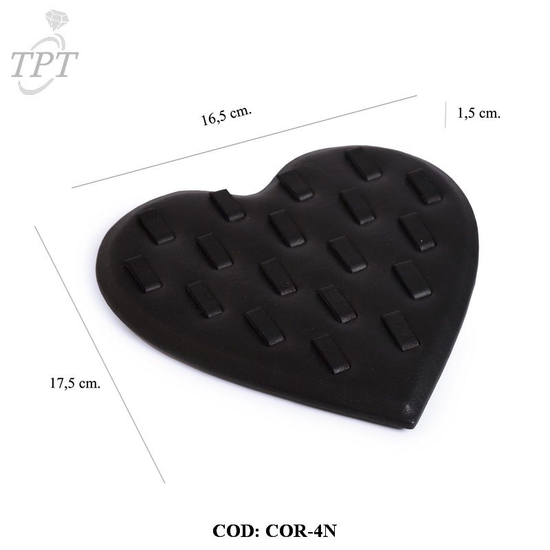 EXHIBIDOR DE ANILLOS BANDEJA CORAZON NEGRO PARA 18 UNIDADES