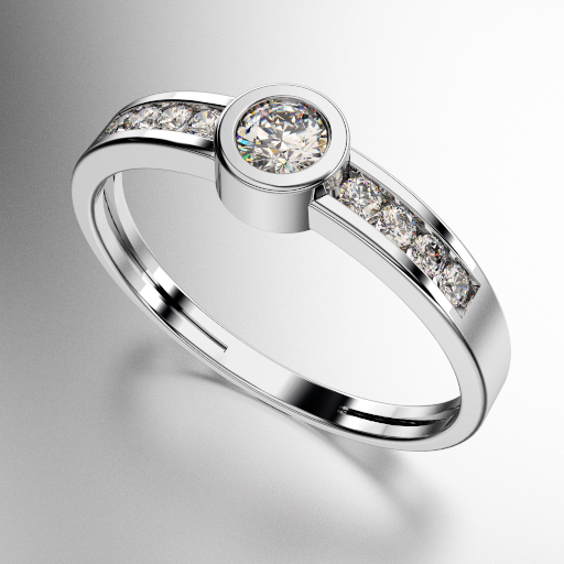 ANILLO PIEDRA CENTRAL REDONDA ENGARCE VIROLA (3.25MM) COSTADOS MEDIO SIN FIN CON PIEDRAS REDONDAS (1.75MM) CUBIC BLANCO ORO BLANCO 18KTS (MOD. A013) Cuotas - Sin Interés: