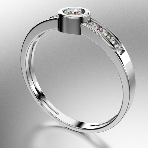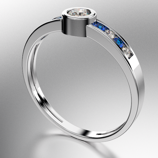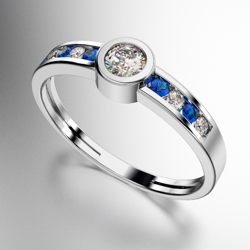 ANILLO PIEDRA CENTRAL REDONDA ENGARCE VIROLA (3.25MM) COSTADOS MEDIO SIN FIN CON PIEDRAS REDONDAS (1.75MM) CUBIC-ZAFIRO ORO BLANCO 18KTS (MOD. A013) Cuotas - Sin Interés: