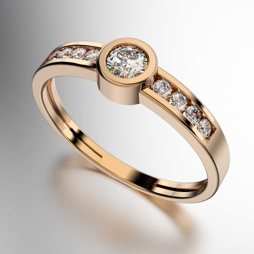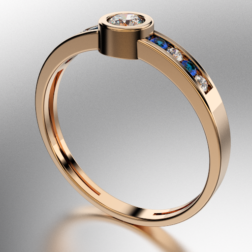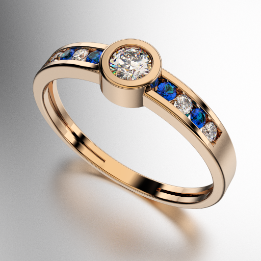 ANILLO PIEDRA CENTRAL REDONDA ENGARCE VIROLA (3.25MM) COSTADOS MEDIO SIN FIN CON PIEDRAS REDONDAS (1.75MM) CUBIC-ZAFIRO ORO ROJO 18KTS (MOD. A013) Cuotas - Sin Interés: