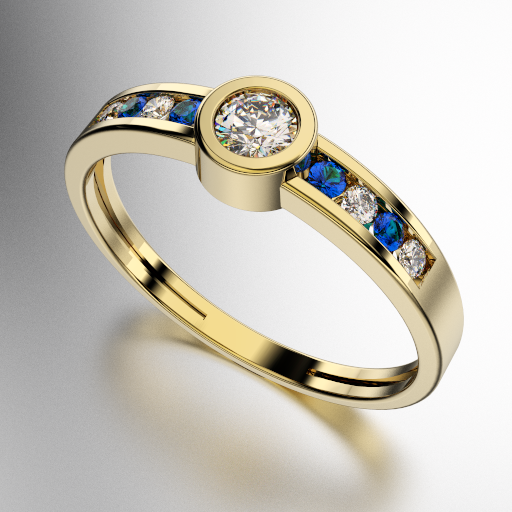 ANILLO PIEDRA CENTRAL REDONDA ENGARCE VIROLA (3.25MM) COSTADOS MEDIO SIN FIN CON PIEDRAS REDONDAS (1.75MM) CUBIC-ZAFIRO ORO AMARILLO 18KTS (MOD. A013) Cuotas - Sin Interés: