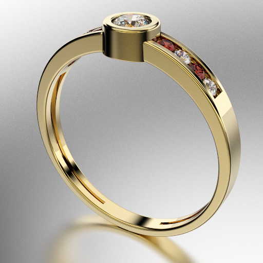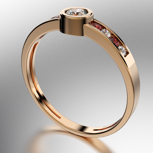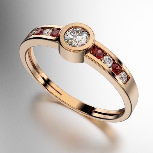 ANILLO PIEDRA CENTRAL REDONDA ENGARCE VIROLA (3.25MM) COSTADOS MEDIO SIN FIN CON PIEDRAS REDONDAS (1.75MM) CUBIC-RUBI ORO ROJO 18KTS (MOD. A013) Cuotas - Sin Interés: