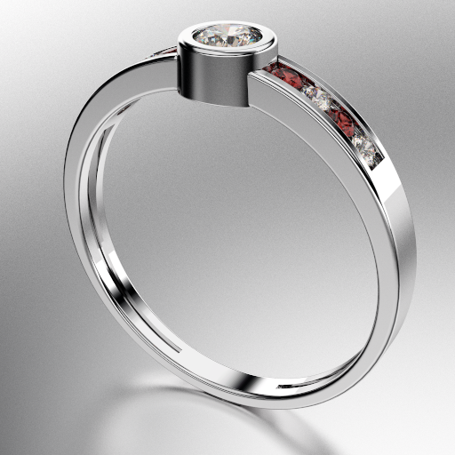 ANILLO PIEDRA CENTRAL REDONDA ENGARCE VIROLA (3.25MM) COSTADOS MEDIO SIN FIN CON PIEDRAS REDONDAS (1.75MM) CUBIC-RUBI ORO BLANCO 18KTS (MOD. A013) Cuotas - Sin Interés: