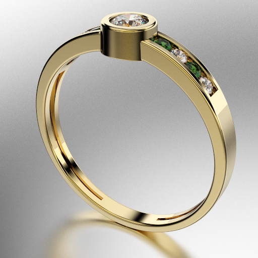 ANILLO PIEDRA CENTRAL REDONDA ENGARCE VIROLA (3.25MM) COSTADOS MEDIO SIN FIN CON PIEDRAS REDONDAS (1.75MM) CUBIC-ESMERALDA ORO AMARILLO 18KTS (MOD. A013) Cuotas - Sin Interés:
