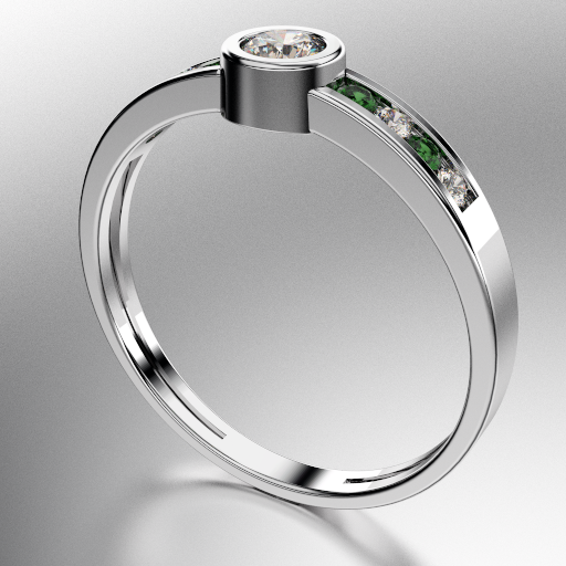 ANILLO PIEDRA CENTRAL REDONDA ENGARCE VIROLA (3.25MM) COSTADOS MEDIO SIN FIN CON PIEDRAS REDONDAS (1.75MM) CUBIC-ESMERALDA ORO BLANCO 18KTS (MOD. A013) Cuotas - Sin Interés: