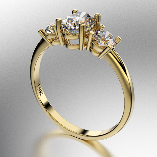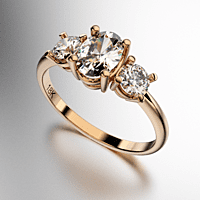 ANILLO TRICILLO PIEDRA CENTRAL OVAL CON DOS PIEDRAS REDONDAS A LOS COSTADOS (MOD. A047)