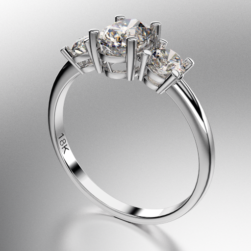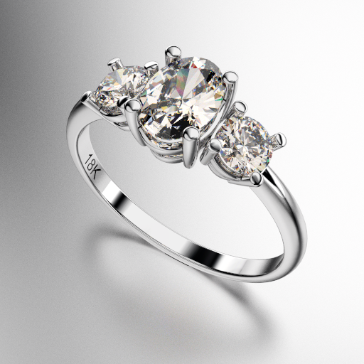 ANILLO TRICILLO PIEDRA CENTRAL OVAL (6X4MM) CON DOS PIEDRAS REDONDAS A LOS COSTADOS (3MM) CUBIC BLANCO ORO BLANCO 18KTS (MOD. A047) Cuotas - Sin Interés: