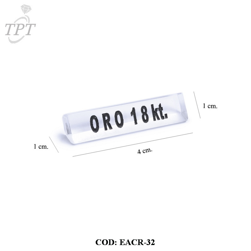 EXHIBIDORES DE ACRILICO LINGOTE 4CM - LEYENDA ORO 18KTS