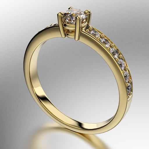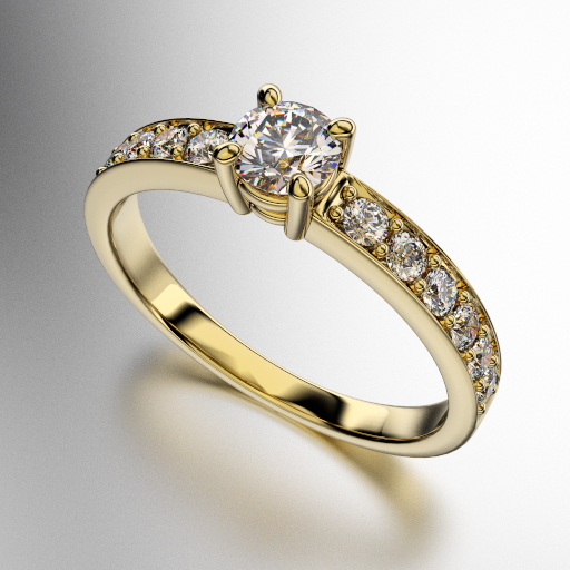 ANILLOS SOLITARIO CUERPO CINTA PIEDRA CENTRAL REDONDA (4.5MM) CON PIEDRITAS DE COSTADO CUBIC BLANCO ORO AMARILLO 18KTS (MOD. A109) Cuotas - Sin Interés: