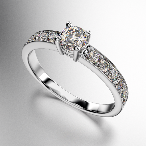 ANILLOS SOLITARIO CUERPO CINTA PIEDRA CENTRAL REDONDA (4.5MM) CON PIEDRITAS DE COSTADO CUBIC BLANCO ORO BLANCO 18KTS (MOD. A109) Cuotas - Sin Interés: