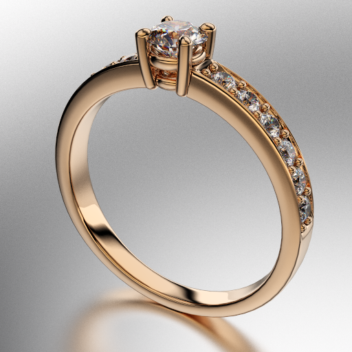 ANILLOS SOLITARIO CUERPO CINTA PIEDRA CENTRAL REDONDA (4.5MM) CON PIEDRITAS DE COSTADO CUBIC BLANCO ORO ROJO 18KTS (MOD. A109) Cuotas - Sin Interés: