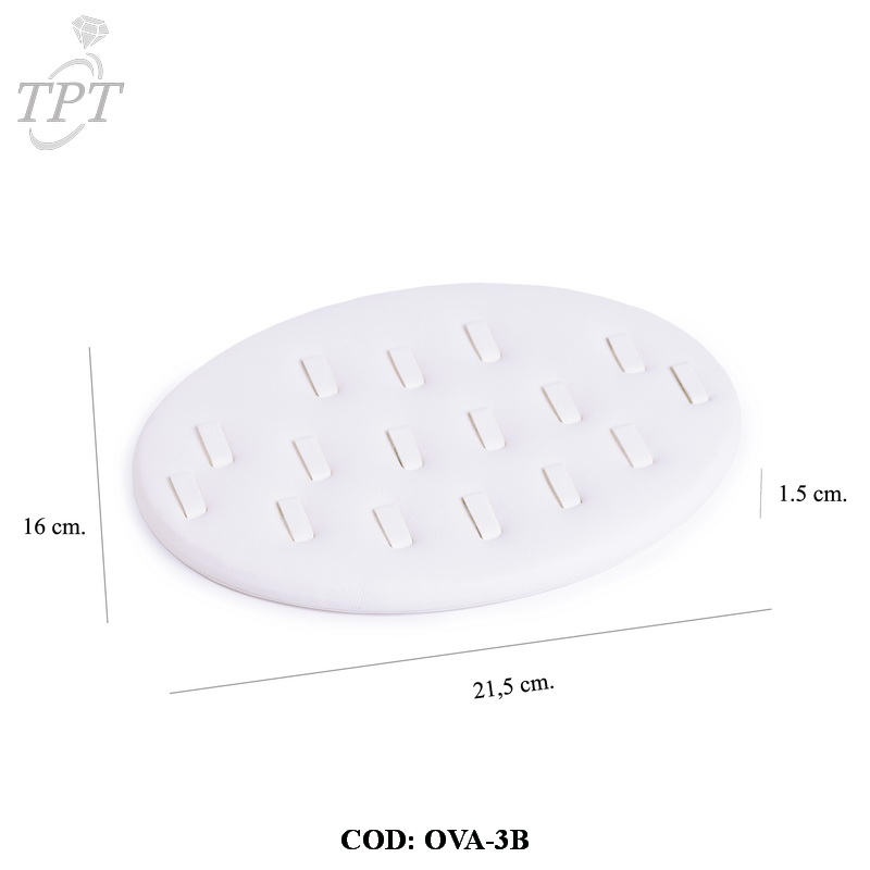 EXHIBIDOR DE ANILLOS BANDEJA OVAL BLANCO PARA 16 UNIDADES