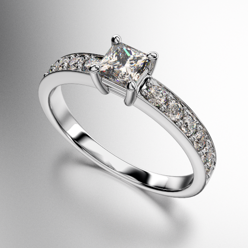 ANILLOS SOLITARIO CUERPO CINTA PIEDRA CENTRAL CARRE (3MM) CON PIEDRITAS DE COSTADO (1.75MM) CUBIC BLANCO ORO BLANCO 18KTS (MOD. A112) Cuotas - Sin Interés: