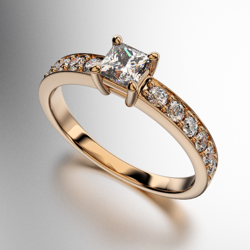 ANILLOS SOLITARIO CUERPO CINTA PIEDRA CENTRAL CARRE (3MM) CON PIEDRITAS DE COSTADO (1.75MM) CUBIC BLANCO ORO ROJO 18KTS (MOD. A112) Cuotas - Sin Interés: