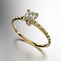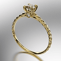 ANILLO SOLITARIO CUERPO TRENZADO CON PIEDRA REDONDA (4MM) Y UNA PIEDRA ENGARCE VIROLA EN LOS LATERALES REDONDAS (1.25MM) CUBIC BLANCO ORO AMARILLO 18KTS (MOD. A080) Cuotas - Sin Interés: