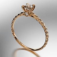 ANILLO SOLITARIO CUERPO TRENZADO CON PIEDRA REDONDA (4MM) Y UNA PIEDRA ENGARCE VIROLA EN LOS LATERALES REDONDAS (1.25MM) CUBIC BLANCO ORO ROJO 18KTS (MOD. A080) Cuotas - Sin Interés: