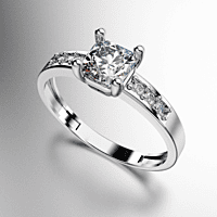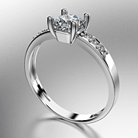 ANILLO SOLITARIO CARRE OCHAVADO CON PIEDRAS DE COSTADO (MOD. A181)
