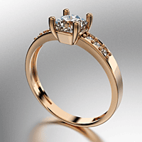 ANILLO SOLITARIO CARRE OCHAVADO CON PIEDRAS DE COSTADO (MOD. A181)-[ CUBIC BLANCO ]-[ ORO ROJO 18KTS ] Cuotas - Sin Interés: