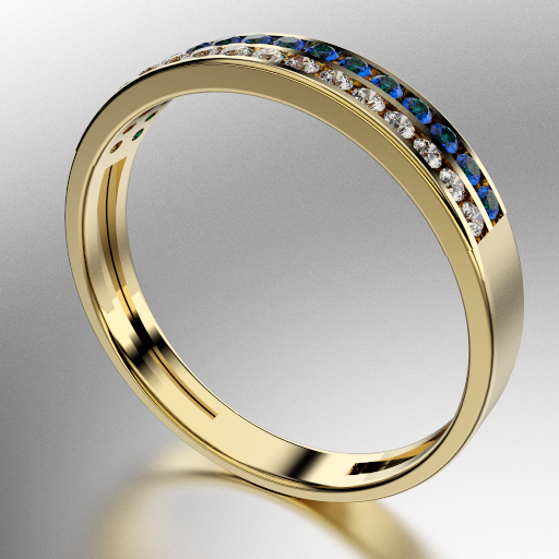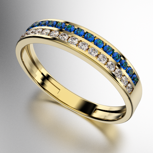 ANILLO DOBLE MEDIO SIN FIN MED. 1 PIEDRAS REDONDAS (1.25MM) CUBIC-ZAFIRO ORO AMARILLO 18KTS (MOD. A006D) Cuotas - Sin Interés: