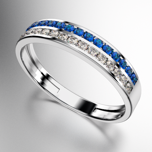 ANILLO DOBLE MEDIO SIN FIN MED. 1 PIEDRAS REDONDAS (1.25MM) CUBIC-ZAFIRO ORO BLANCO 18KTS (MOD. A006D) Cuotas - Sin Interés:
