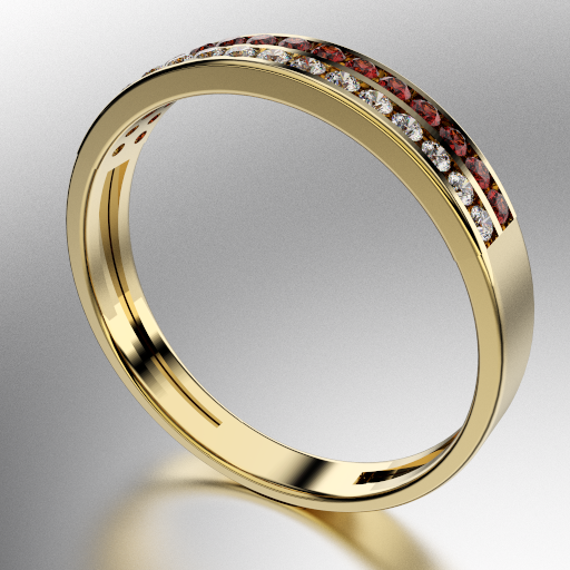 ANILLO DOBLE MEDIO SIN FIN MED. 1 PIEDRAS REDONDAS (1.25MM) CUBIC-RUBI ORO AMARILLO 18KTS (MOD. A006D) Cuotas - Sin Interés: