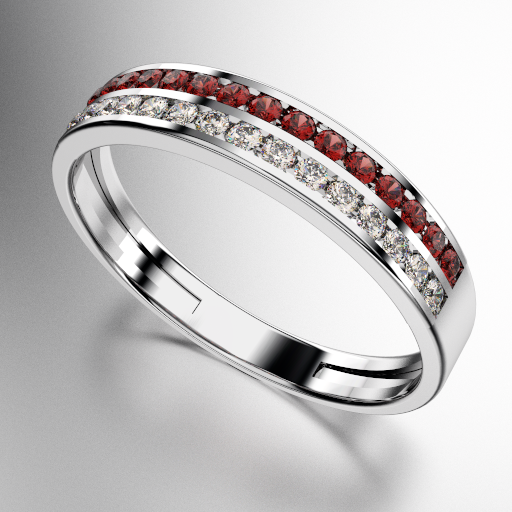 ANILLO DOBLE MEDIO SIN FIN MED. 1 PIEDRAS REDONDAS (1.25MM) CUBIC-RUBI ORO BLANCO 18KTS (MOD. A006D) Cuotas - Sin Interés:
