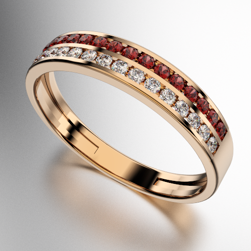 ANILLO DOBLE MEDIO SIN FIN MED. 1 PIEDRAS REDONDAS (1.25MM) CUBIC-RUBI ORO ROJO 18KTS (MOD. A006D) Cuotas - Sin Interés:
