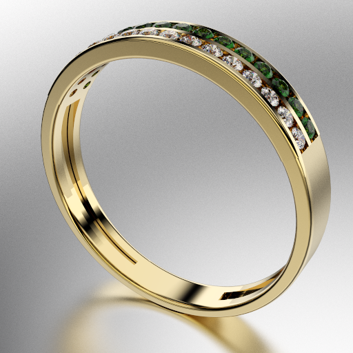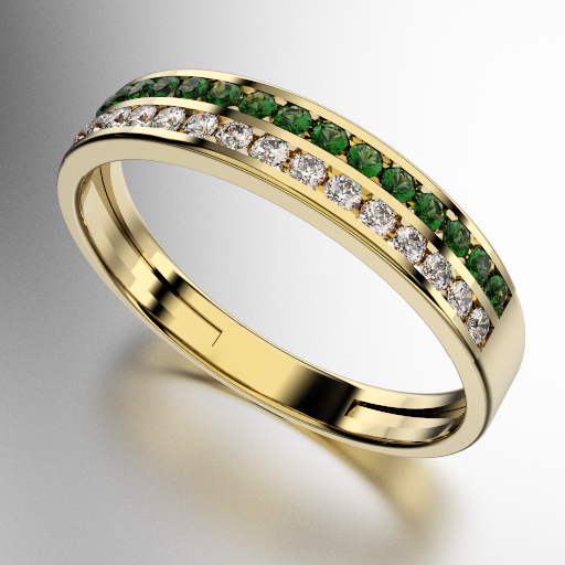 ANILLO DOBLE MEDIO SIN FIN MED. 1 PIEDRAS REDONDAS (1.25MM) CUBIC-ESMERALDA ORO AMARILLO 18KTS (MOD. A006D) Cuotas - Sin Interés: