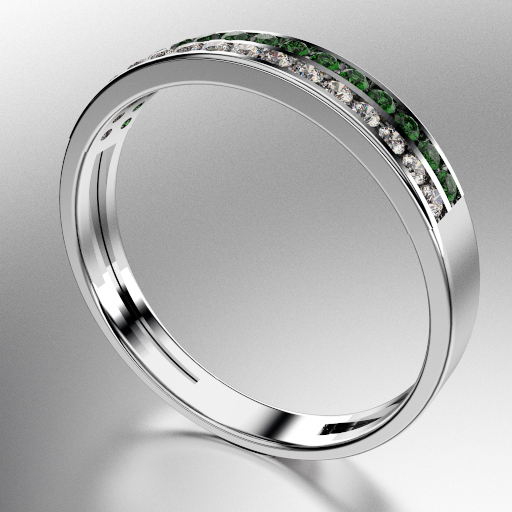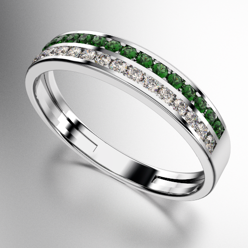 ANILLO DOBLE MEDIO SIN FIN MED. 1 PIEDRAS REDONDAS (1.25MM) CUBIC-ESMERALDA ORO BLANCO 18KTS (MOD. A006D) Cuotas - Sin Interés:
