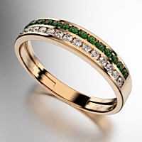 ANILLO DOBLE MEDIO SIN FIN MED. 1 PIEDRAS REDONDAS (1.25MM) CUBIC-ESMERALDA ORO ROJO 18KTS (MOD. A006D) Cuotas - Sin Interés: