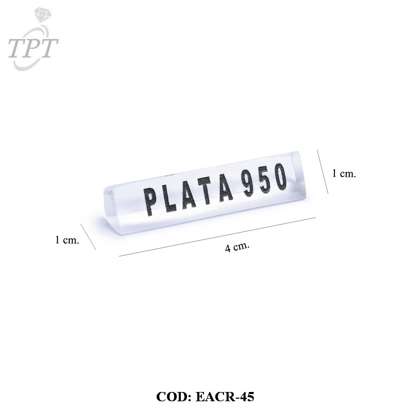 EXHIBIDORES DE ACRILICO LINGOTE 4CM - LEYENDA PLATA 950