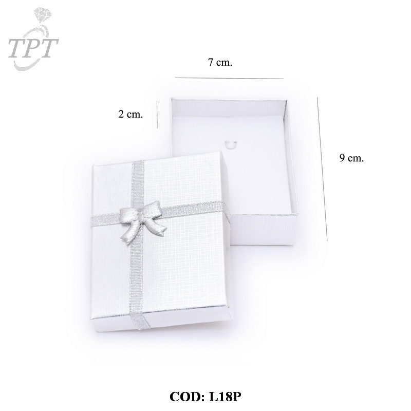 ESTUCHE DE CARTON MEDIDA 2 PARA CADENA Y MEDALLA (70*90*25) PLATEADO CON DISEÑO