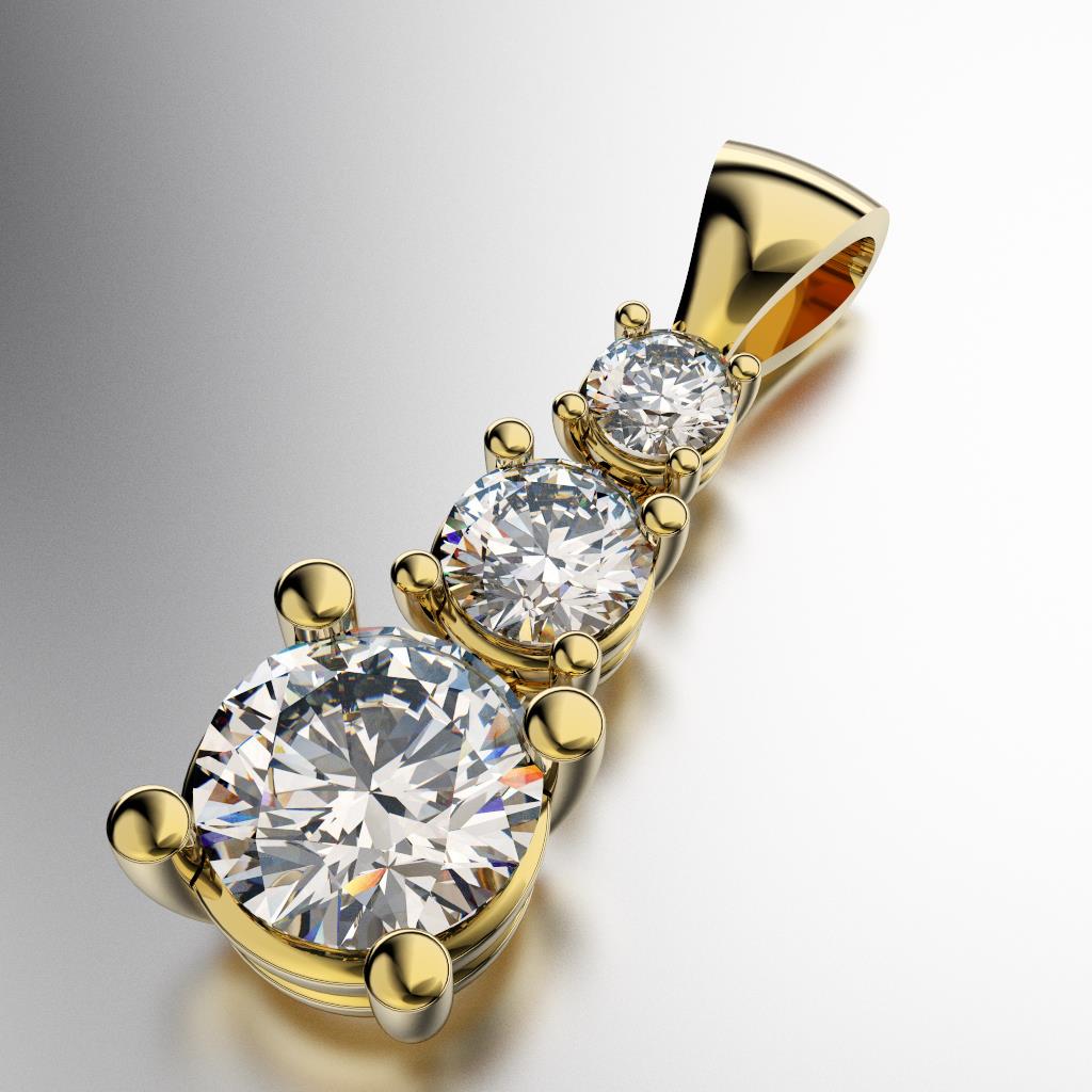 COLGANTE ENGARCE A GRIFAS CON TRES PIEDRAS EN VERTICAL REDONDAS (2MM/3MM/4MM) CUBIC BLANCO ORO AMARILLO 18KTS (MOD. D019) Cuotas - Sin Interés: