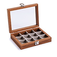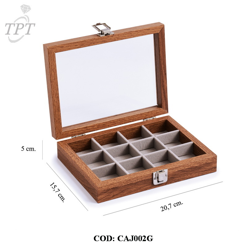EXHIBIDOR CON TAPA DE VIDRIO CON 12 DIVISIONES INTERIOR GRIS - (EST-3219)