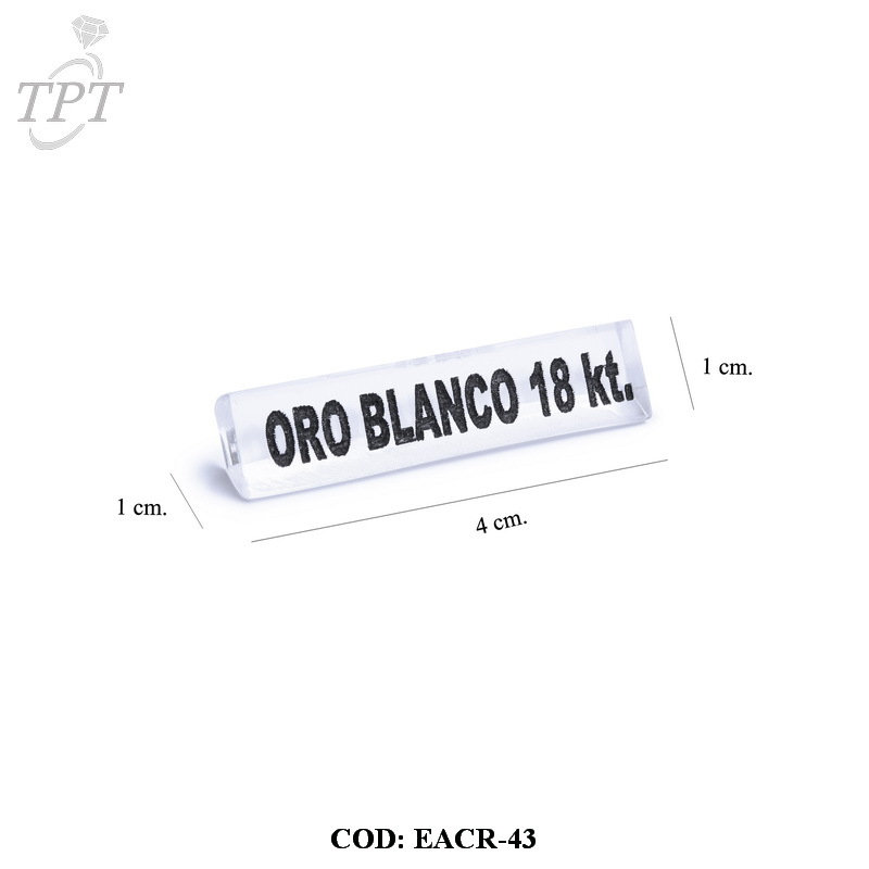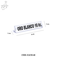 EXHIBIDORES DE ACRILICO LINGOTE 4CM - LEYENDA ORO BLANCO 18KTS