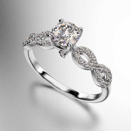 ANILLO SOLITARIO COSTADO INFINITO/OCHITO ENGARCE PAVEE (1.25MM/4MM) CUBIC BLANCO ORO BLANCO 18KTS (MOD. A020) Cuotas - Sin Interés: