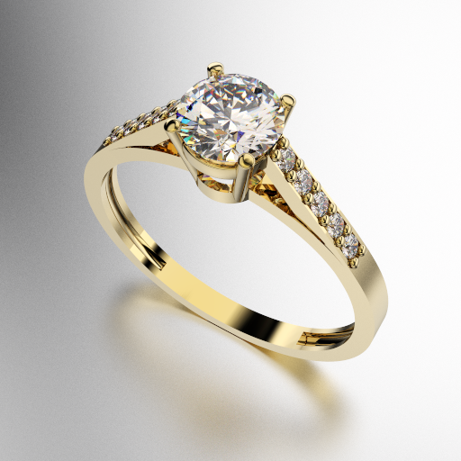 ANILLO SOLITARIO COSTADO CON PIEDRAS REDONDAS (1.25MM/5MM) CUBIC BLANCO ORO AMARILLO 18KTS (MOD. A035) Cuotas - Sin Interés: