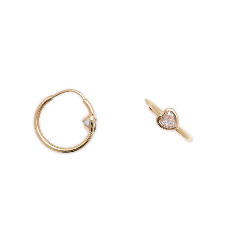 AROS CUBANOS CON PIEDRA CORAZON CUBIC 10MM ORO AMARILLO 18KTS Cuotas - Sin Interés: