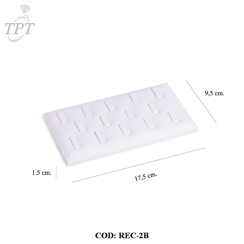 EXHIBIDOR DE ANILLOS BANDEJA RECTANGULAR BLANCO PARA 14 UNIDADES