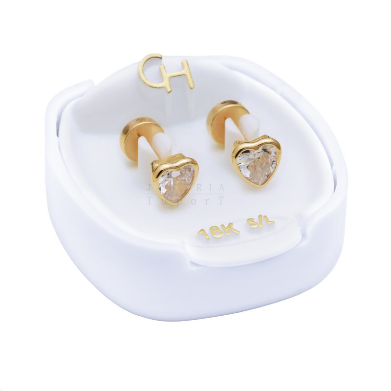 ARO ABRIDOR CORAZON VIROLA CON CUBIC BLANCO TICS LAMINADOS, ORO 18KTS (MOD.792) Cuotas - Sin Interés: