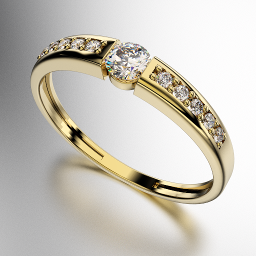 ANILLO PIEDRA CENTRAL REDONDA ENGARCE DESNUDO (3MM) COSTADOS CON PIEDRAS REDONDAS (1.25MM) CUBIC BLANCO ORO AMARILLO 18KTS (MOD. A017) Cuotas - Sin Interés: