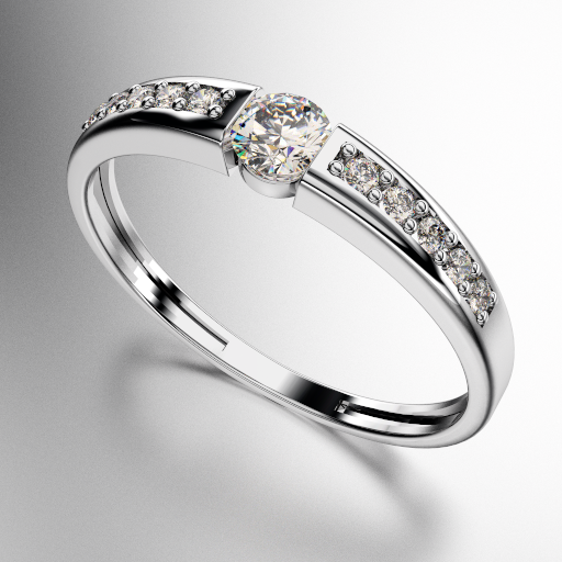 ANILLO BRILLANTE CENTRAL REDONDO ENGARCE DESNUDO (3MM) COSTADOS CON BRILLANTE REDONDO (1.25MM), 20 PUNTOS (MOD. A017)