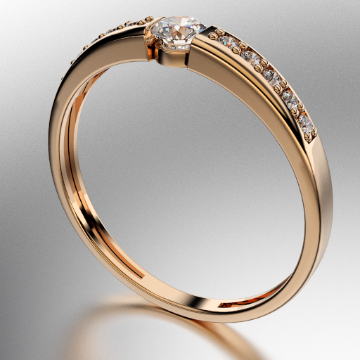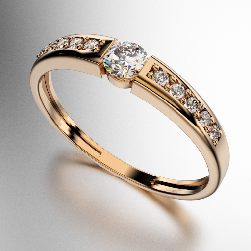 ANILLO BRILLANTE CENTRAL REDONDO ENGARCE DESNUDO (3MM) COSTADOS CON BRILLANTE REDONDO (1.25MM), 20 PUNTOS ORO ROJO 18KTS (MOD. A017) Cuotas - Sin Interés: