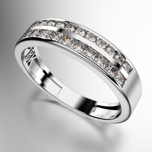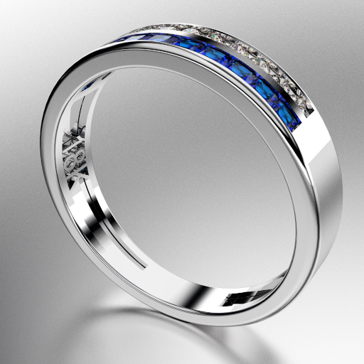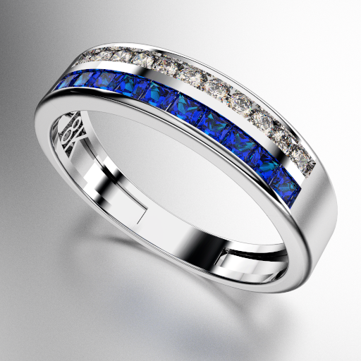 ANILLO DOBLE MEDIO SIN FIN UNA HILERA CON PIEDRAS CARRE (2MM) Y OTRA CON PIEDRAS REDONDAS (1.5MM) CUBIC-ZAFIRO ORO BLANCO 18KTS (MOD. A044) Cuotas - Sin Interés:
