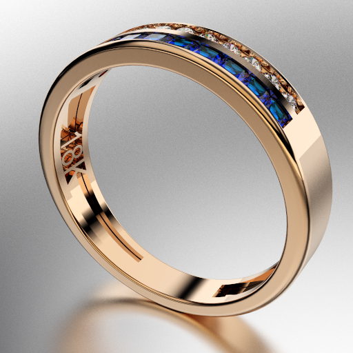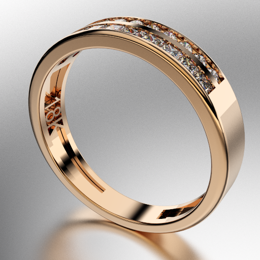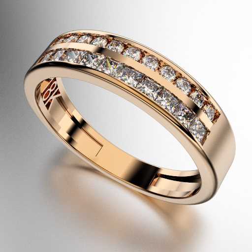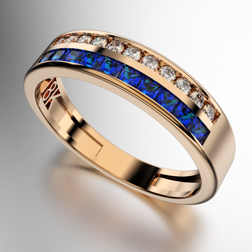 ANILLO DOBLE MEDIO SIN FIN UNA HILERA CON PIEDRAS CARRE (2MM) Y OTRA CON PIEDRAS REDONDAS (1.5MM) CUBIC-ZAFIRO ORO ROJO 18KTS (MOD. A044) Cuotas - Sin Interés: