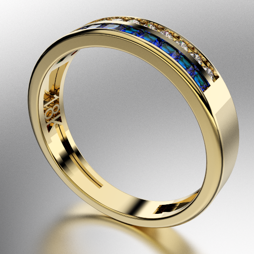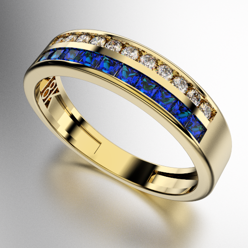 ANILLO DOBLE MEDIO SIN FIN UNA HILERA CON PIEDRAS CARRE (2MM) Y OTRA CON PIEDRAS REDONDAS (1.5MM) CUBIC-ZAFIRO ORO AMARILLO 18KTS (MOD. A044) Cuotas - Sin Interés: