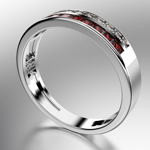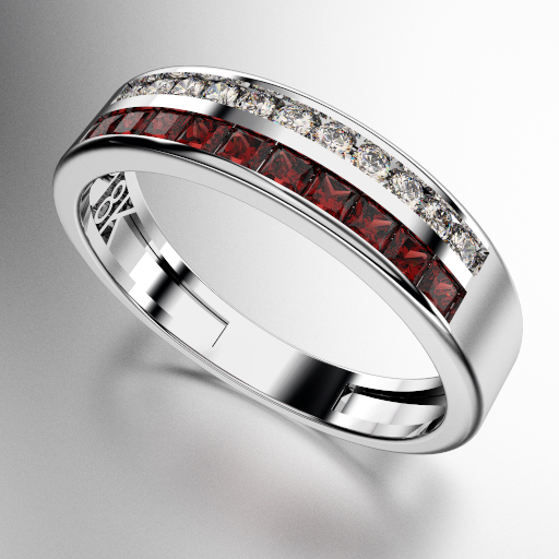 ANILLO DOBLE MEDIO SIN FIN UNA HILERA CON PIEDRAS CARRE (2MM) Y OTRA CON PIEDRAS REDONDAS (1.5MM) CUBIC-RUBI ORO BLANCO 18KTS (MOD. A044) Cuotas - Sin Interés: