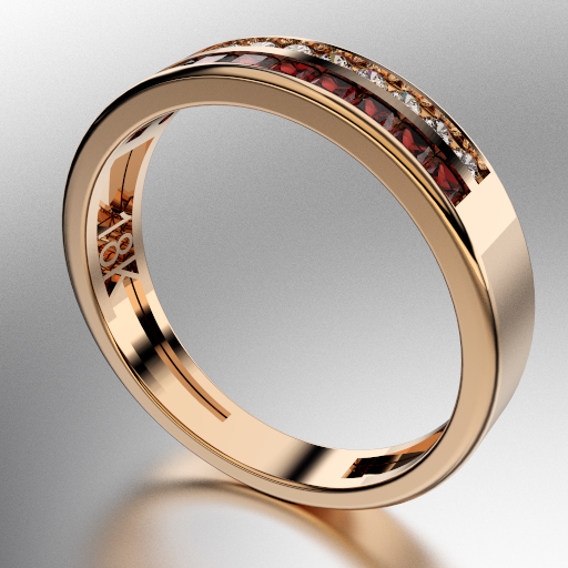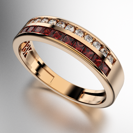 ANILLO DOBLE MEDIO SIN FIN UNA HILERA CON PIEDRAS CARRE (2MM) Y OTRA CON PIEDRAS REDONDAS (1.5MM) CUBIC-RUBI ORO ROJO 18KTS (MOD. A044) Cuotas - Sin Interés: