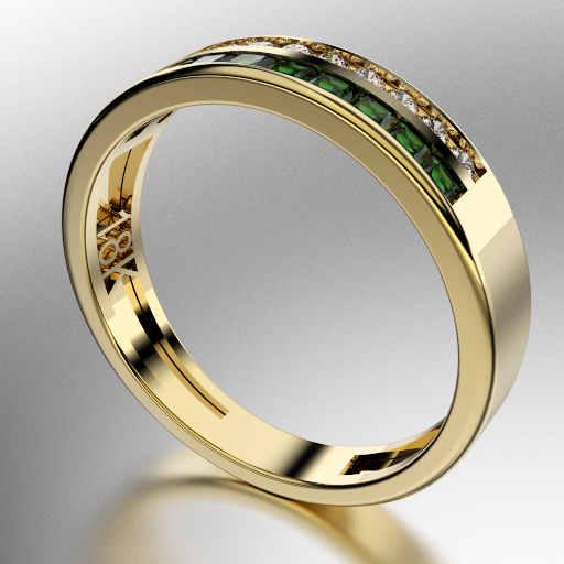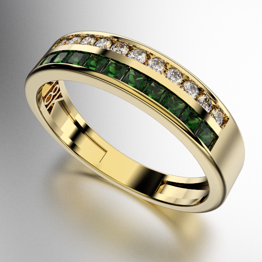 ANILLO DOBLE MEDIO SIN FIN UNA HILERA CON PIEDRAS CARRE (2MM) Y OTRA CON PIEDRAS REDONDAS (1.5MM) CUBIC-ESMERALDA ORO AMARILLO 18KTS (MOD. A044) Cuotas - Sin Interés: